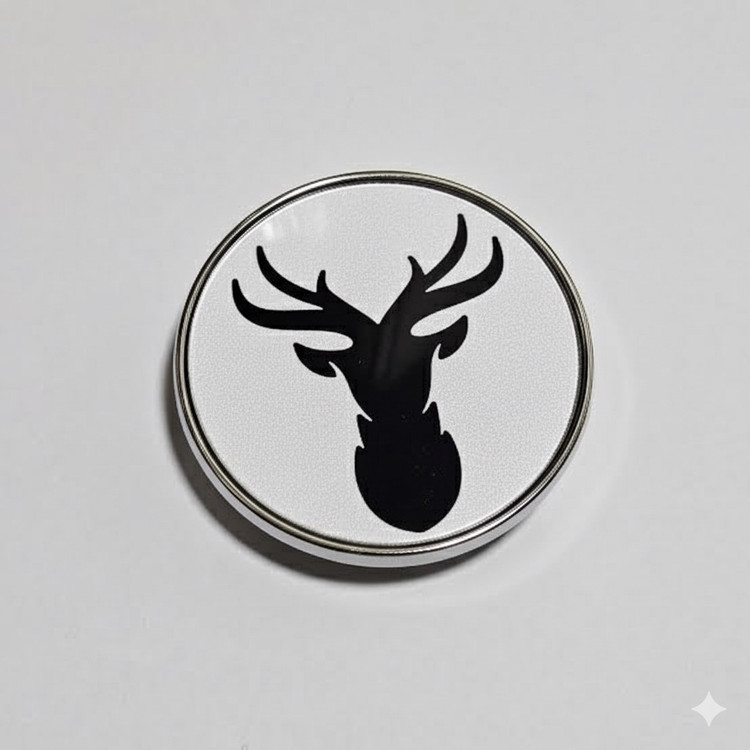 لوگوی گوزن شاخدار نمادی قدرتمند و مینیمال است که اصالت، رهبری و اعتماد را به مخاطب القا میکند. این نشان، یک سیلhouet (نیمرخ سیاه) از سر یک گوزن نر با شاخهای کامل را در داخل یک دایره سفید و محصور در یک کادر نقرهای نمایش میدهد.